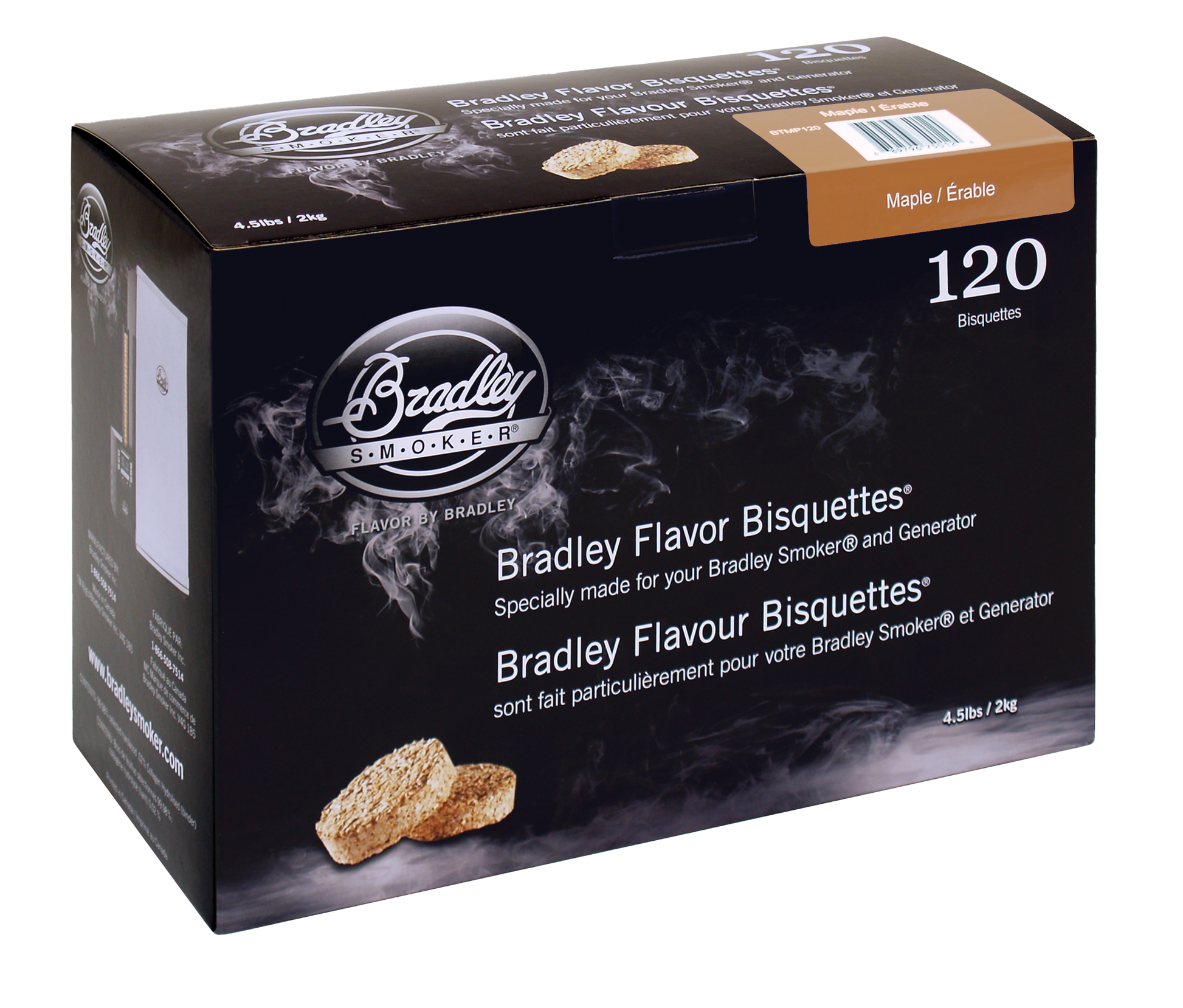 Bradley Smoker Maple Wood Bisquettes ® werden aus reinem Holz hergestellt. So können Sie Speisen mit purem, köstlichem Geschmack räuchern.