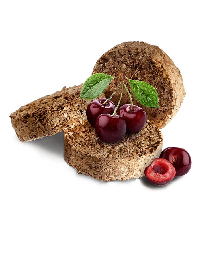 Kirschbisquetten bieten ein mildes, süßes und fruchtiges Aroma und eignen sich perfekt zum Räuchern von Geflügel, Fisch, Meeresfrüchten, Rind-, Schweine- und Lammfleisch, Wasservögeln, Gemüse und Käse.